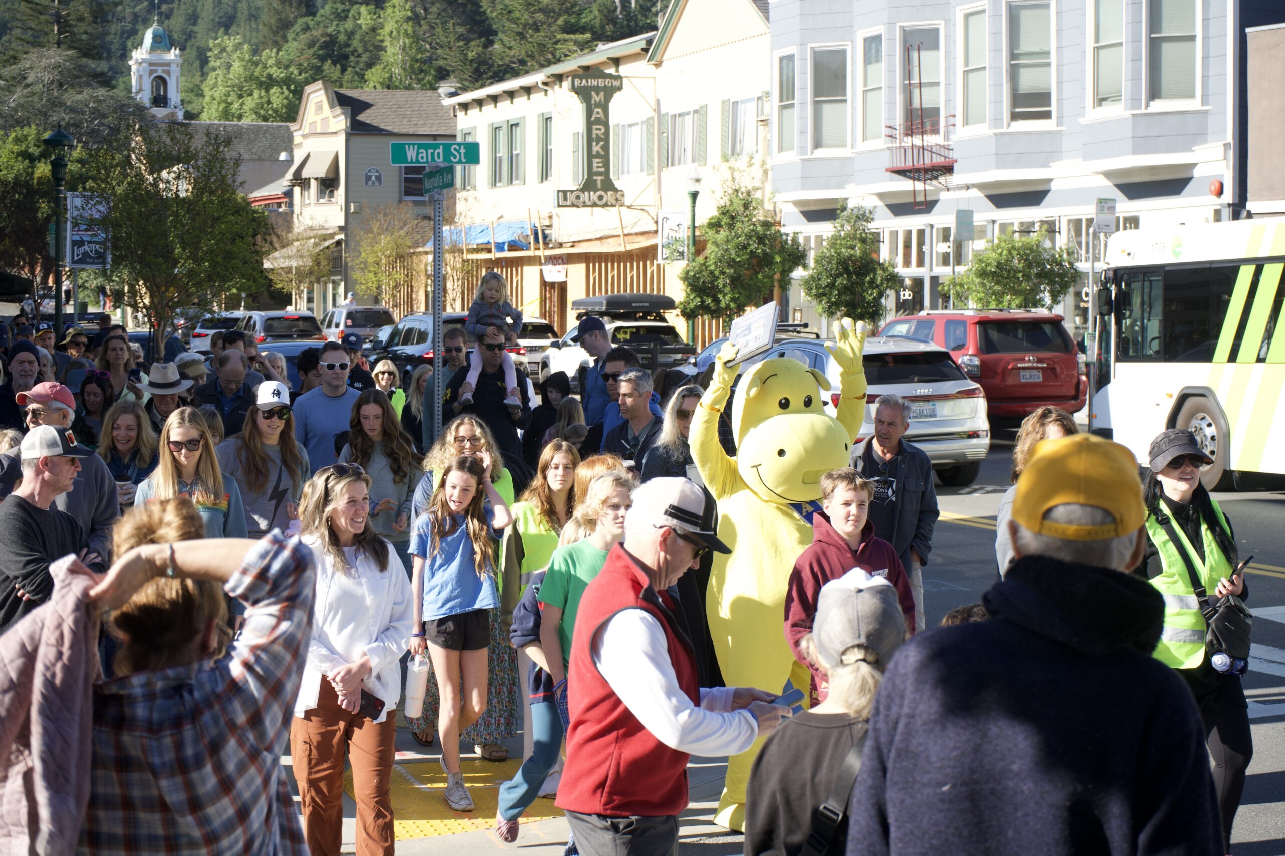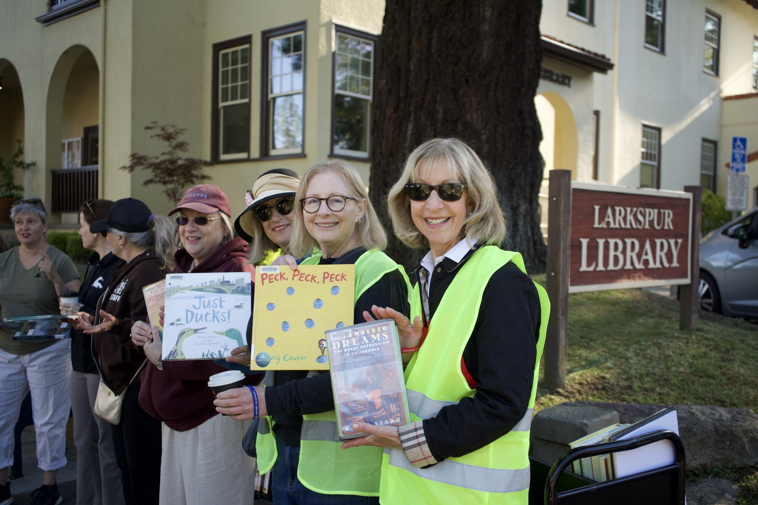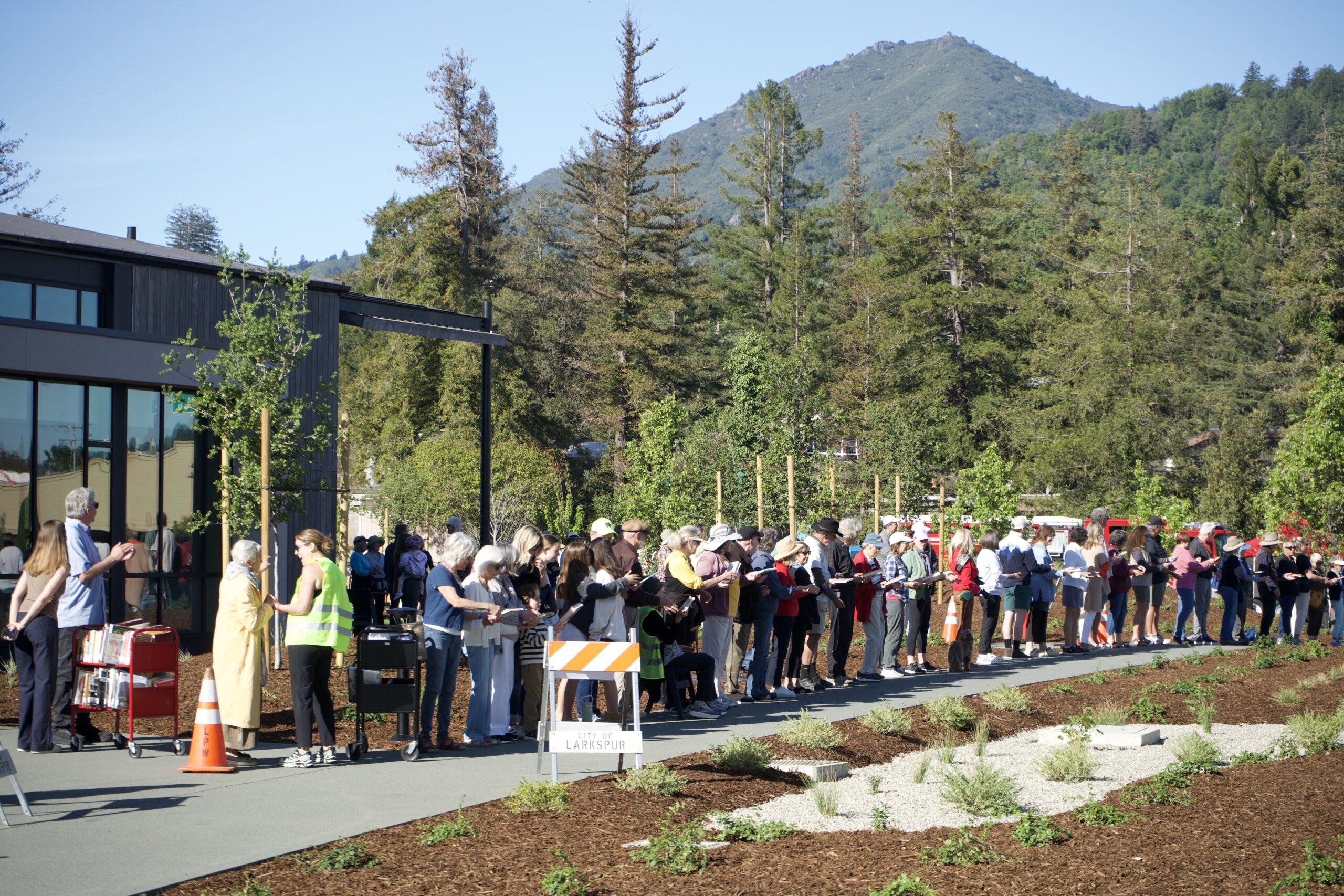 The new Larkspur Library’s grand opening on March 28, 2025, was a joyful and exciting community celebration, kicked off by a book brigade organized by the Friends of Larkspur Library along with dedicated library supporters. More than 800 people formed a human chain, passing a final selection of 500 books one by one down historic Magnolia Avenue. Stretching nearly half a mile, the line connected the old downtown library to the new Larkspur Library at The Commons on Rose Lane. The event was vibrant and uplifting, bringing neighbors together in a truly memorable way. Library mascot “Larky” carried the final book to its new home, followed by remarks from local leaders and a ribbon-cutting led by Larkspur Mayor Stephanie Andre. For the first time, the library’s front doors opened, welcoming the community into a beautiful space with panoramic views of Mt. Tamalpais. Outside, attendees mingled and enjoyed city-sponsored food, activities, and the newly landscaped grounds. The book brigade was planned and made possible through a coalition of community groups, including the Friends of Larkspur Library, the Larkspur Library Board, the Larkspur Library Foundation, the Larkspur Community Foundation, the Library Director, a Rose Lane resident and of course, the community! With such widespread support, it’s clear this new library is more than just a building filled with books—it’s a powerful testament to what a community can achieve together.