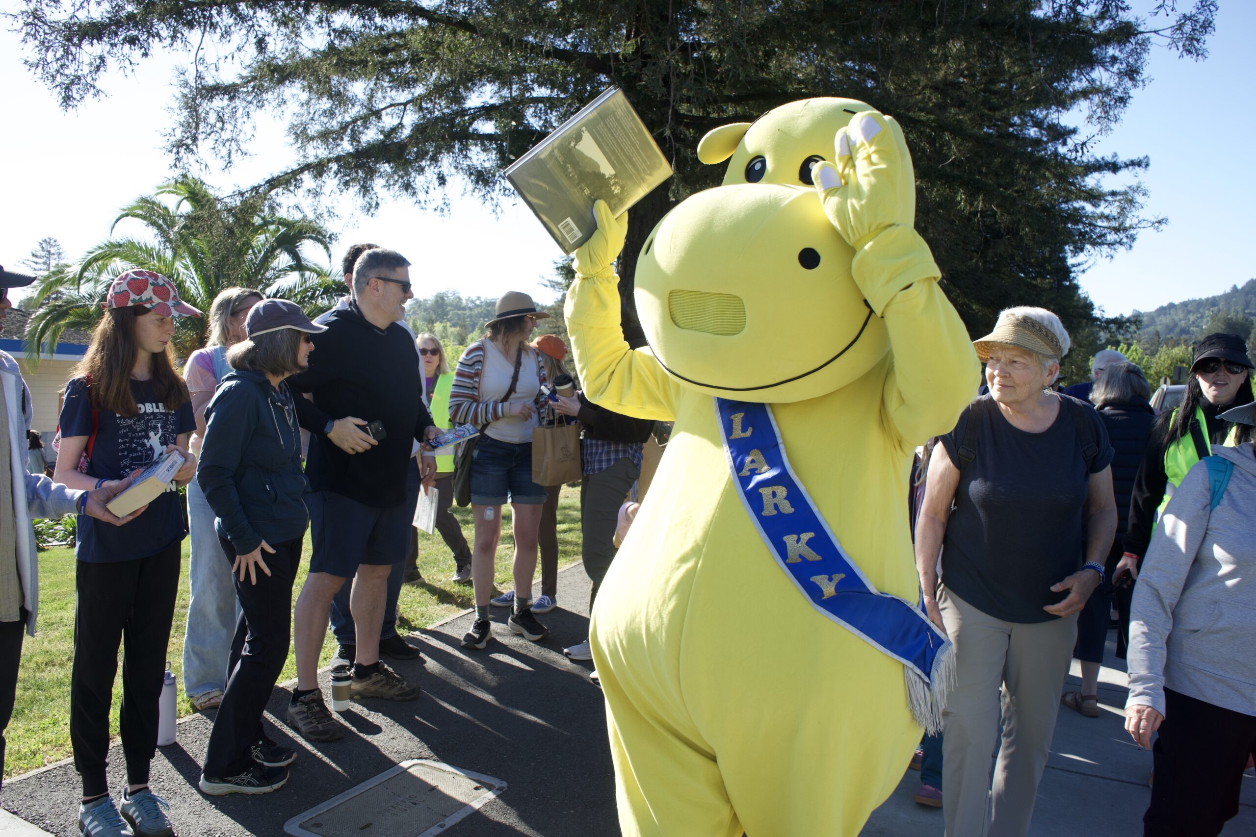 Larky is a big gentle yellow hippopotamus who loves books and kids. He was adopted as Larkspur Library’s mascot more than 50 years ago. Larkspur schoolchildren voted on his name. An important part of Larkspur town tradition, Larky comes to many town and library events. Be sure to say hello the next time you see him!